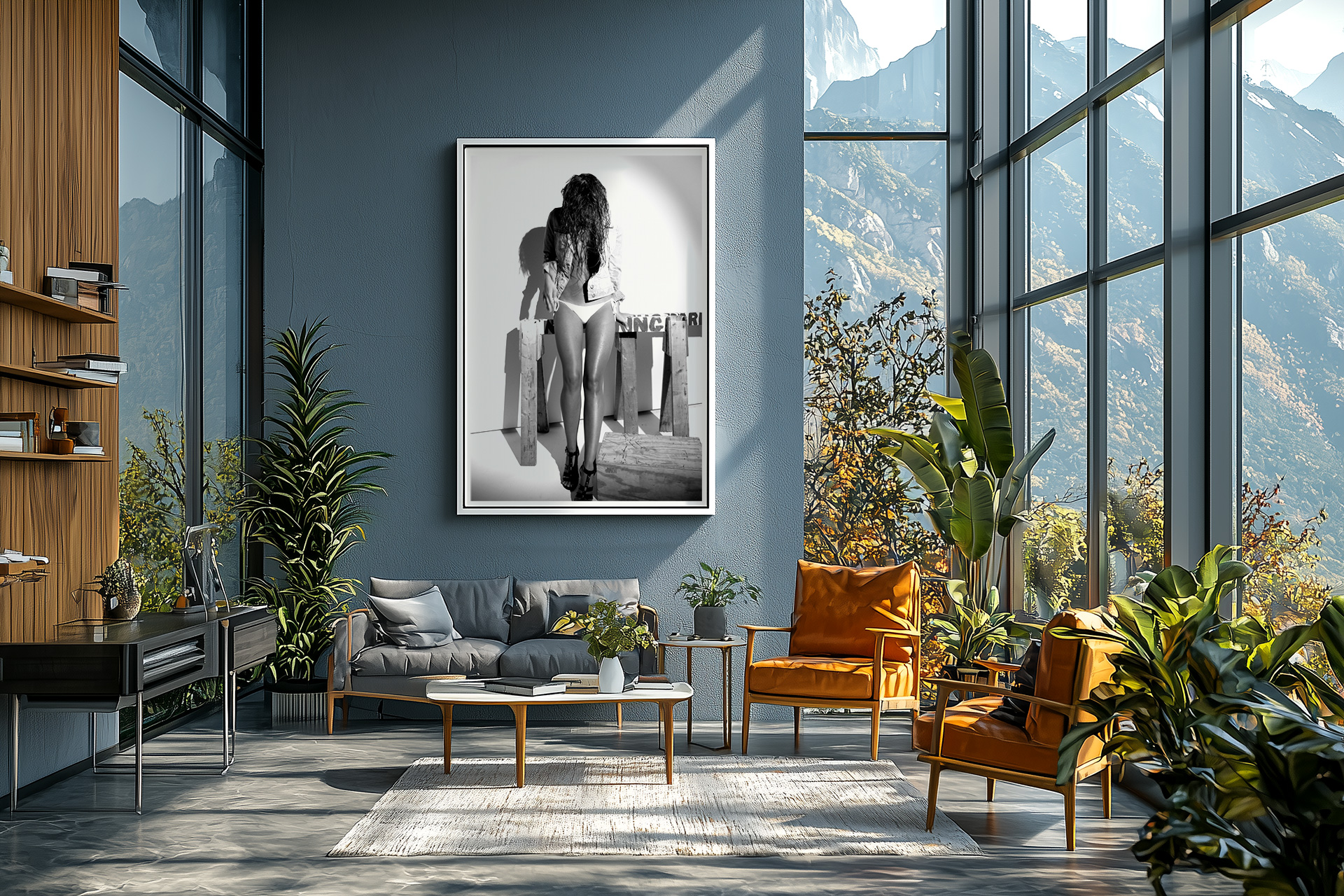 This striking artwork from the ‘Denim Noir’ series, shot by Liäns Jadän, explores the raw interplay of light, shadow, and texture. The model’s wet denim jacket adds layers of complexity to the visual experience, making it a perfect addition to any modern or minimalistic decor.